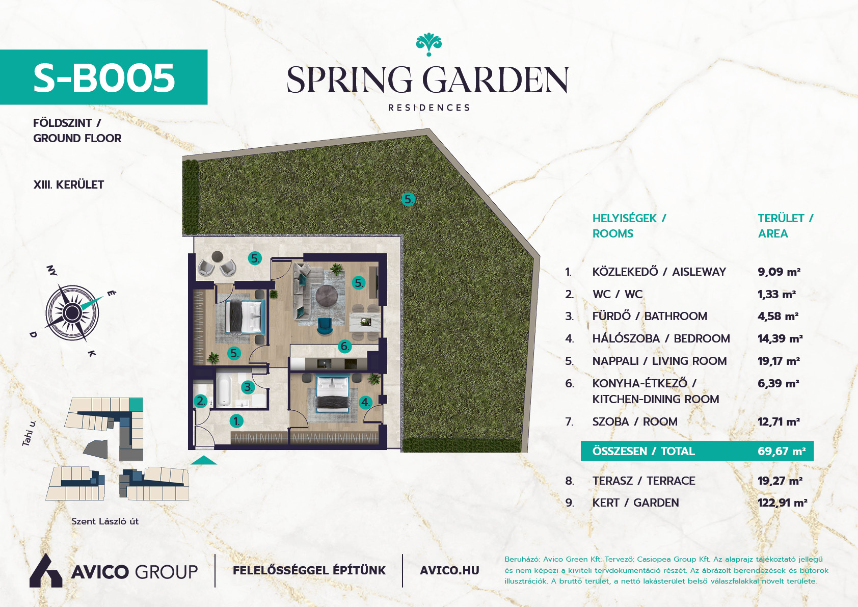 A Spring Garden Lakópark a Szent László út és Tahi utca sarkán épül, a Rákos-patak közvetlen szomszédságában. A környéken minden fontos intézményt és szolgáltatást megtalálsz: óvodákat, iskolákat, egészségügyi létesítményeket, valamint bevásárló- és szórakoztatóközpontokat.
